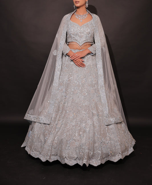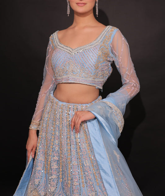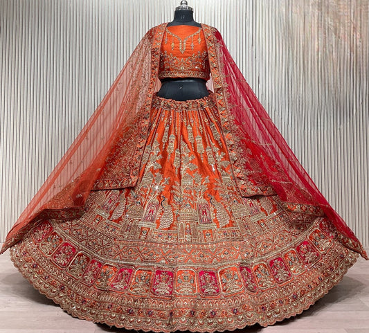 Améliorez votre tenue traditionnelle avec le Lehenga Choli. Cet ensemble composé d'un haut, jupe et voile, sera parfait pour toute occasion spéciale. Fabriqué avec des matériaux de haute qualité, il offre un ajustement confortable tout en mettant en valeur votre beauté grâce à son design élégant. Complétez votre look et sentez-vous comme une reine avec cet ensemble exquis.