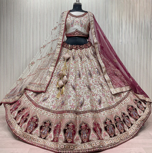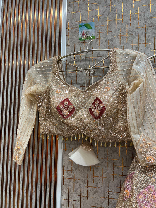 Améliorez votre tenue traditionnelle avec le Lehenga Choli. Cet ensemble composé d'un haut, jupe et voile, sera parfait pour toute occasion spéciale. Fabriqué avec des matériaux de haute qualité, il offre un ajustement confortable tout en mettant en valeur votre beauté grâce à son design élégant. Complétez votre look et sentez-vous comme une reine avec cet ensemble exquis.