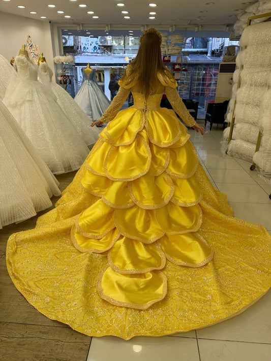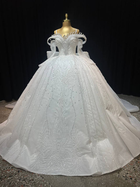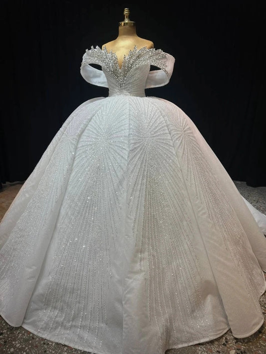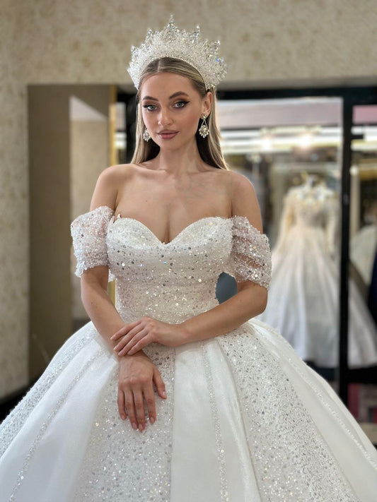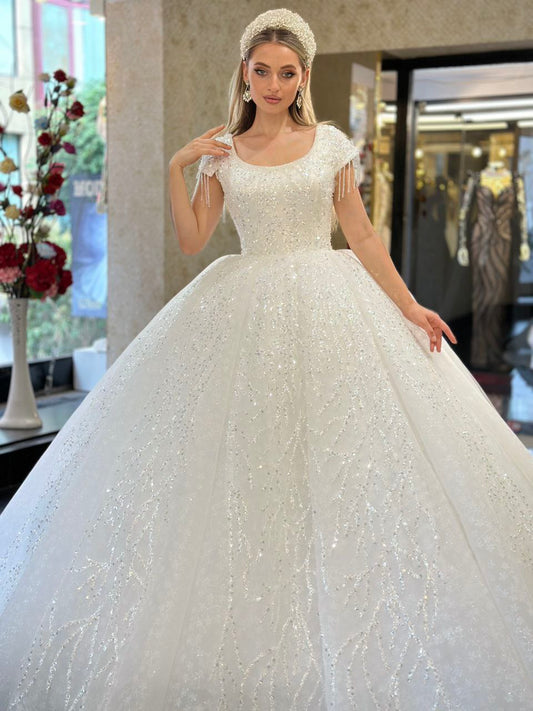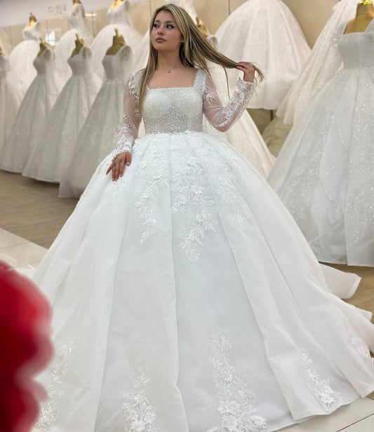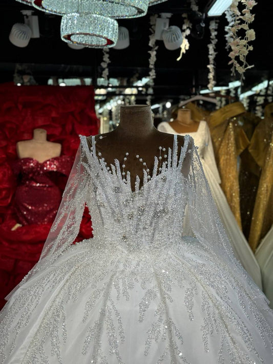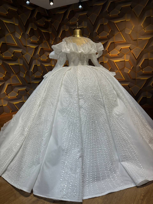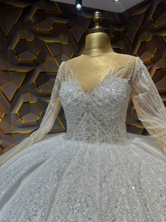 Robe de Mariée Princesse Luxury, Paillettes, Manches Longues