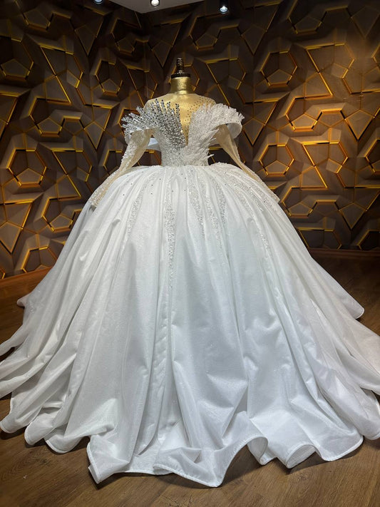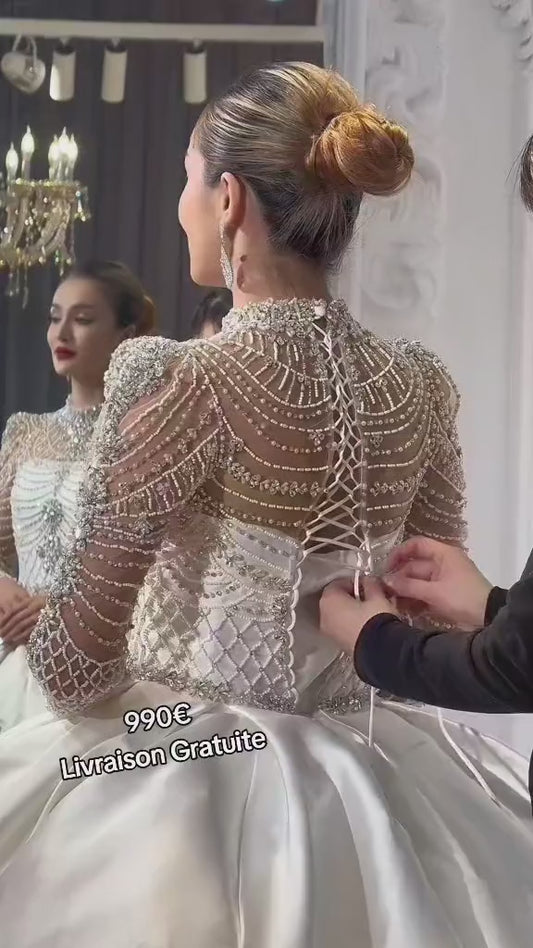 Robe de Mariée Princesse Luxury Strass et Perles, Manches Longues