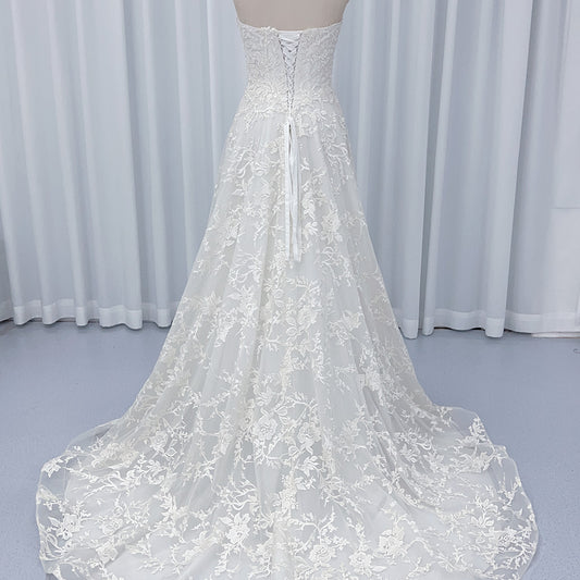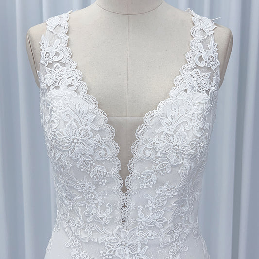 Robe de Mariée Sirène/Trapèze, Col en V, Dentelle, Ligne A, Traîne