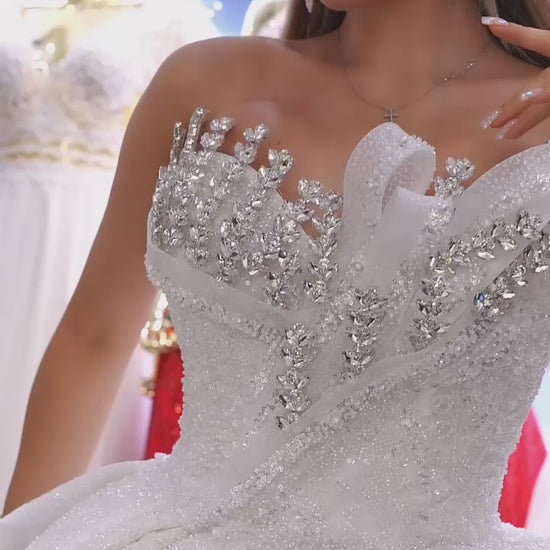 Magnifique Robe de Mariée Princesse Luxury Bustier, Col Coeur en Strass avec Traîne.