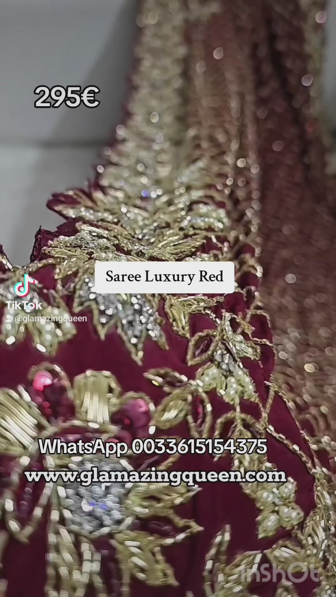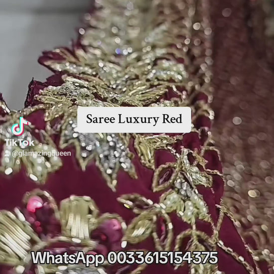 Saree Rouge Bordeaux Luxury + Blouse Sur Mesure (Vous recevrez le formulaire des mesures par Mail)